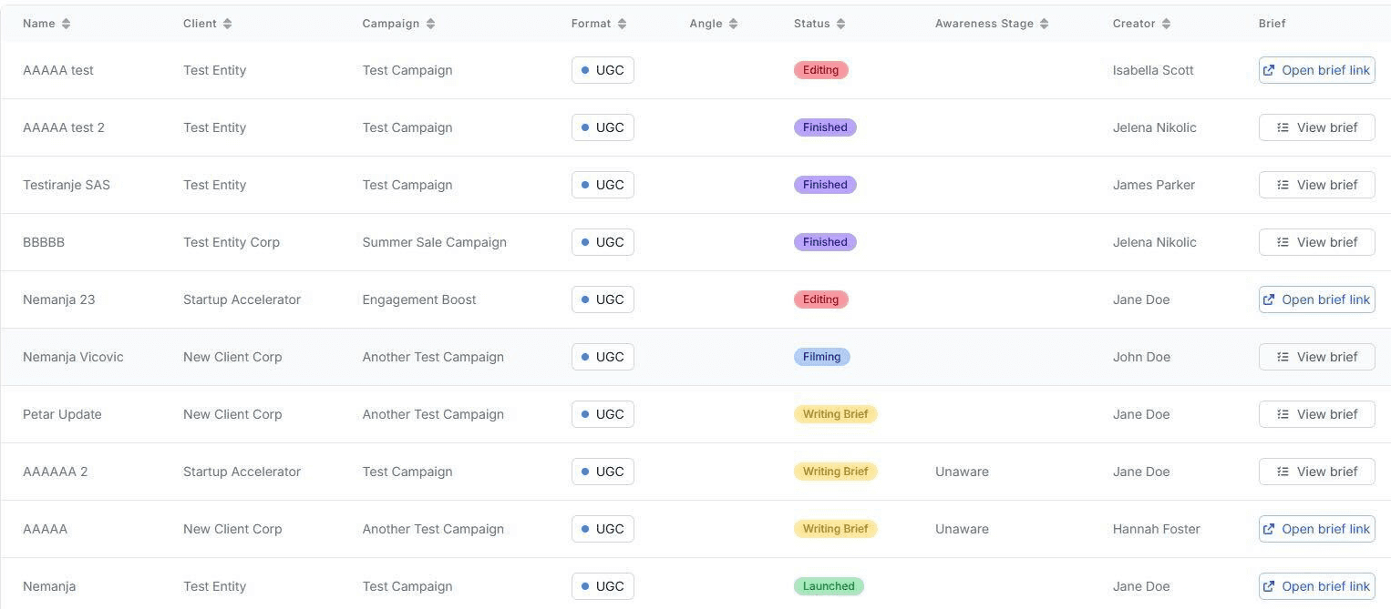 Keep everything organized in one place, so your campaigns, ads, briefs and creators always work together.