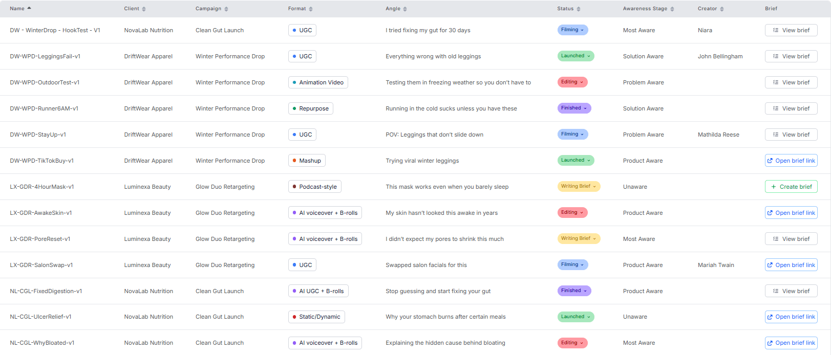 Keep everything organized in one place, so your campaigns, ads, briefs and creators always work together.